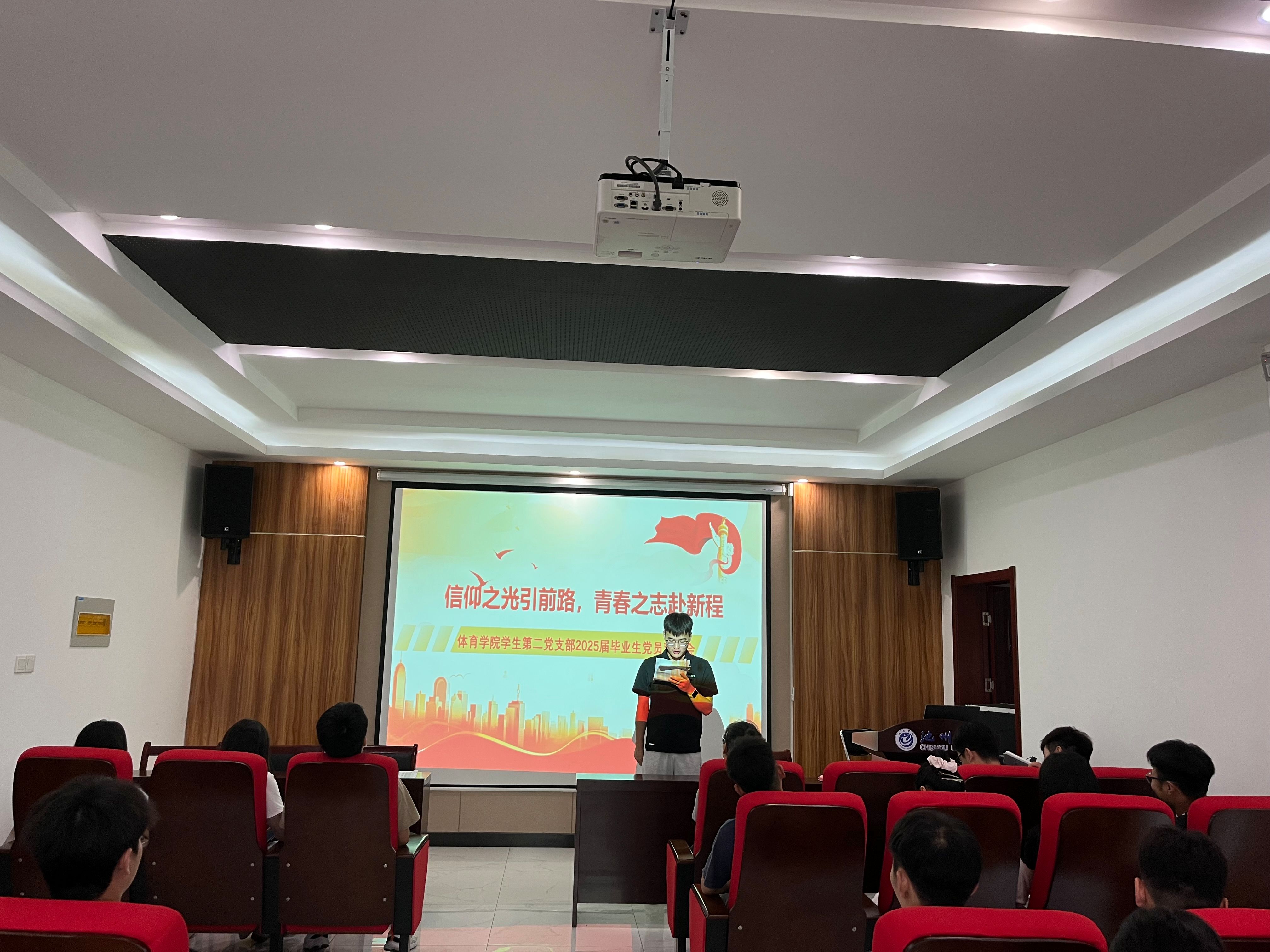 欢送会上,2022级党员代表王允允同志向毕业生党员送上真挚祝福。她回顾了学长学姐们在思想引领、志愿服务和支部建设中的模范作用,并表示将以他们为榜样,赓续奋斗。毕业生党员代表李锋同志深情发表毕业感言,他表示无论未来走向何方,我们都会牢记“体育人”的拼搏精神和共产党员的责任担当,在祖国需要的地方贡献青春力量。
